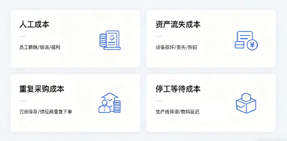 很多企业只看到资产采购成本,却忽略盘点人工、资产流失、重复采购、停工等待造成的管理成本。隐形成本往往高于系统投入本身。